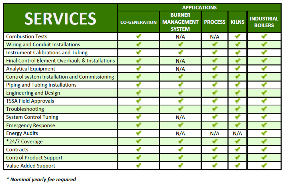 Durham Combustion Limited employees are available on a regularly scheduled basis, for emergencies and on scheduled conversions and turnarounds to provide all instrumentation, electrical and control needs.